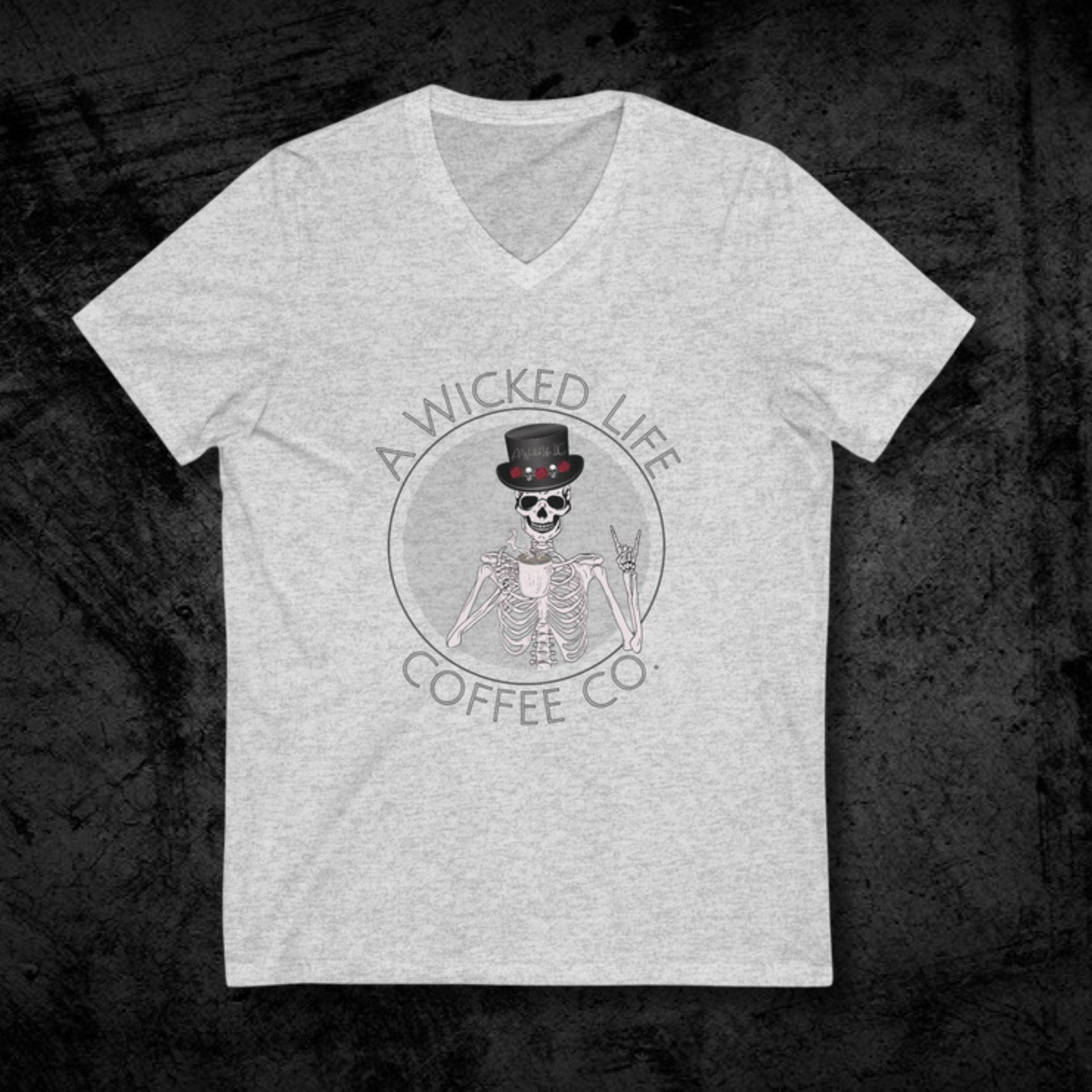 Rep A Wicked Life Coffee Co. with this trendy V-neck tee. Lightweight, comfortable, and perfect for coffee lovers with style.