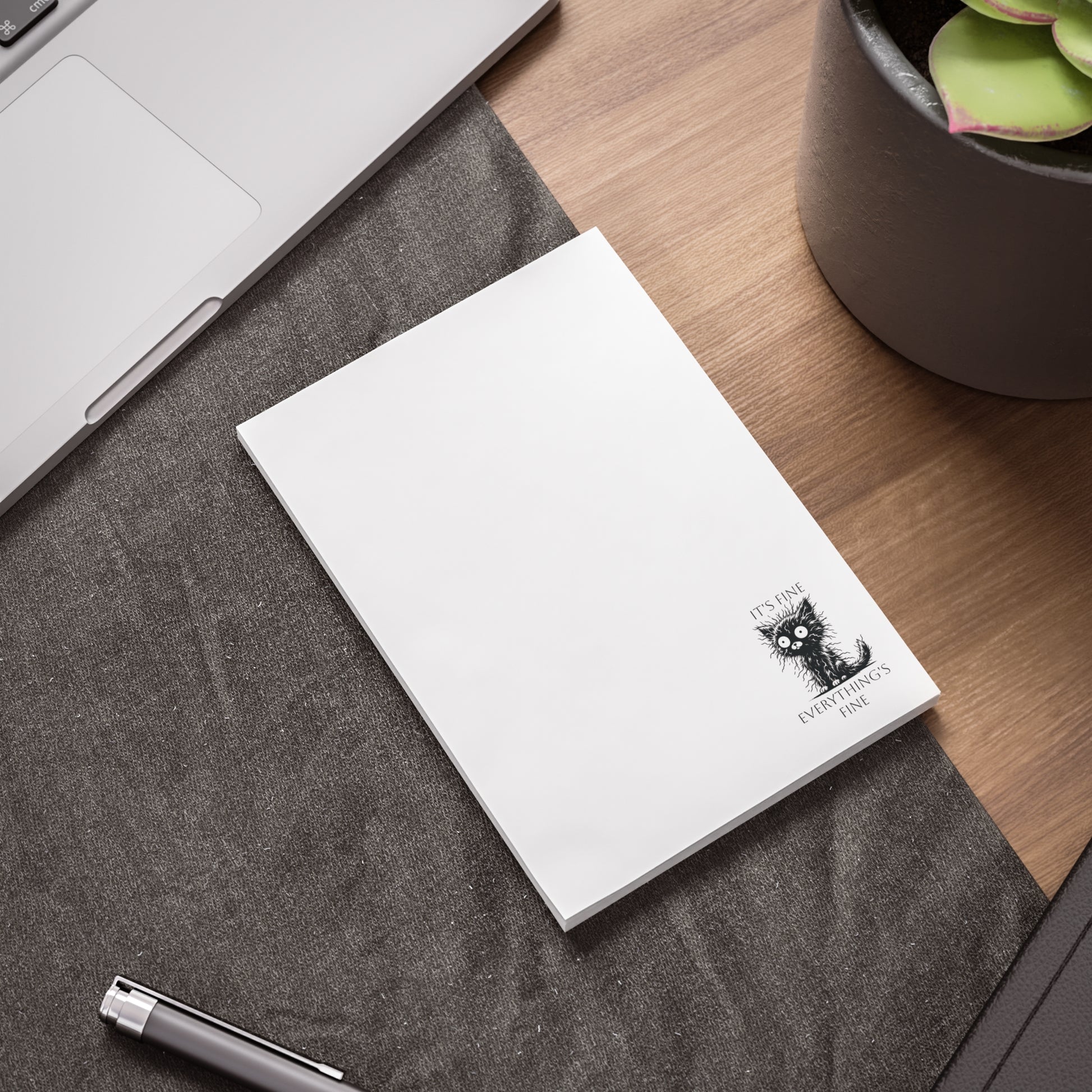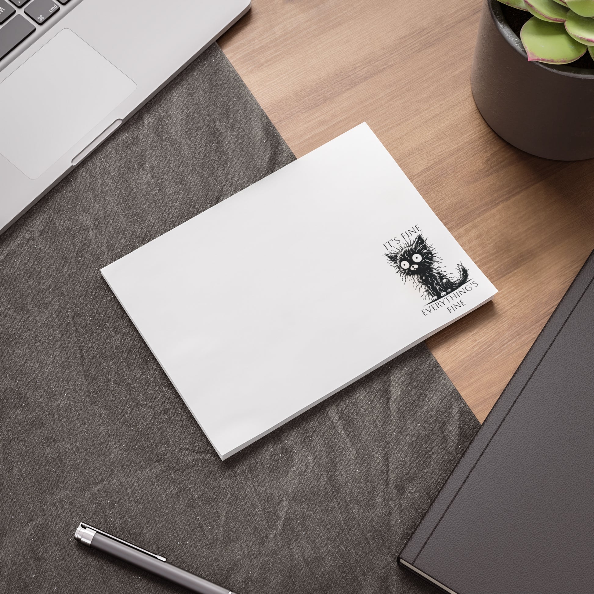 We've all been there - stressed, overwhelmed, but insisting "it's fine, everything is fine." This adorable stressed-out cat perfectly captures that mood. These Post-it® style note pads are perfect for cat lovers who appreciate a good laugh during chaotic days.